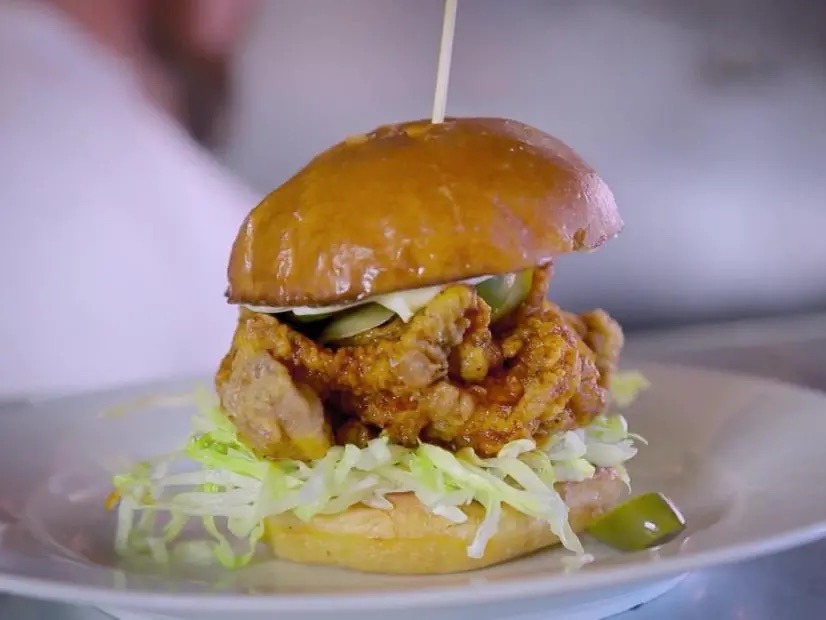 On this trip, Guy Fieri's playing a tasty game of chicken all over the country. In Alameda, Calif., a joint is cookin' it Nashville hot-style and putting a gourmet twist on a burger. In Lansing, Mich., the bird is served French-style at a funky pizza-pasta place. And, in Kona, Hawaii, it's stuffed at a spot dishin' out Southern comfort with island flair.